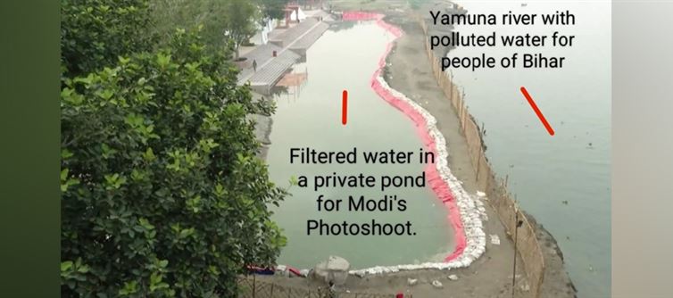 The yamuna River, long reduced to a slow-moving gutter of industrial waste and untreated sewage, suddenly found itself in the spotlight this Chhath Puja — not because it was cleaned, but because it was filtered. As lakhs of Bihari devotees braved the toxic froth and stench for their sacred rituals, a pristine, man-made pond reportedly appeared for one man: Prime minister narendra Modi.
