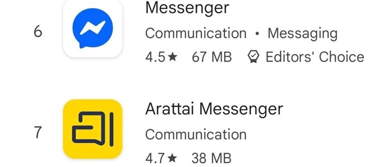 Fast forward just a few weeks — Arattai has already slipped to #7 on the Play Store.