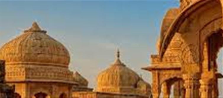 · Beyond the fort, the city is dotted with intricately carved havelis made from golden sandstone.