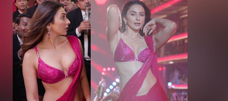 The saree glimmers, the bass thunders, and rakul turns a wedding-season track into a Bollywood supernova.