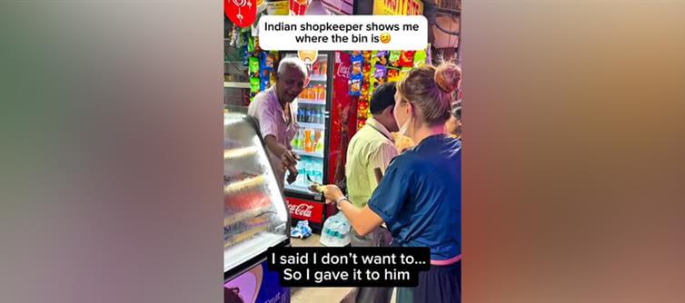 In the viral clip, a woman — clearly trying to do the right thing — asks for a dustbin after finishing a snack. The shopkeeper gestures casually to the ground, implying that littering is normal.