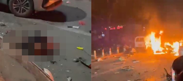 Nearby vehicles caught fire, their frames twisted by the impact. “It looked like a war zone,” said a rescue official.