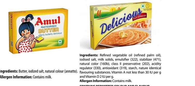 Walk into any supermarket in india and you’ll find two nearly identical yellow boxes sitting side by side: Amul Butter and Delicious Fat Spread. Same shape. Similar colour. Same familiar Amul-style design language. One costs ₹58. The other is just ₹19. One is real butter. The other is palm-oil-based fat spread.