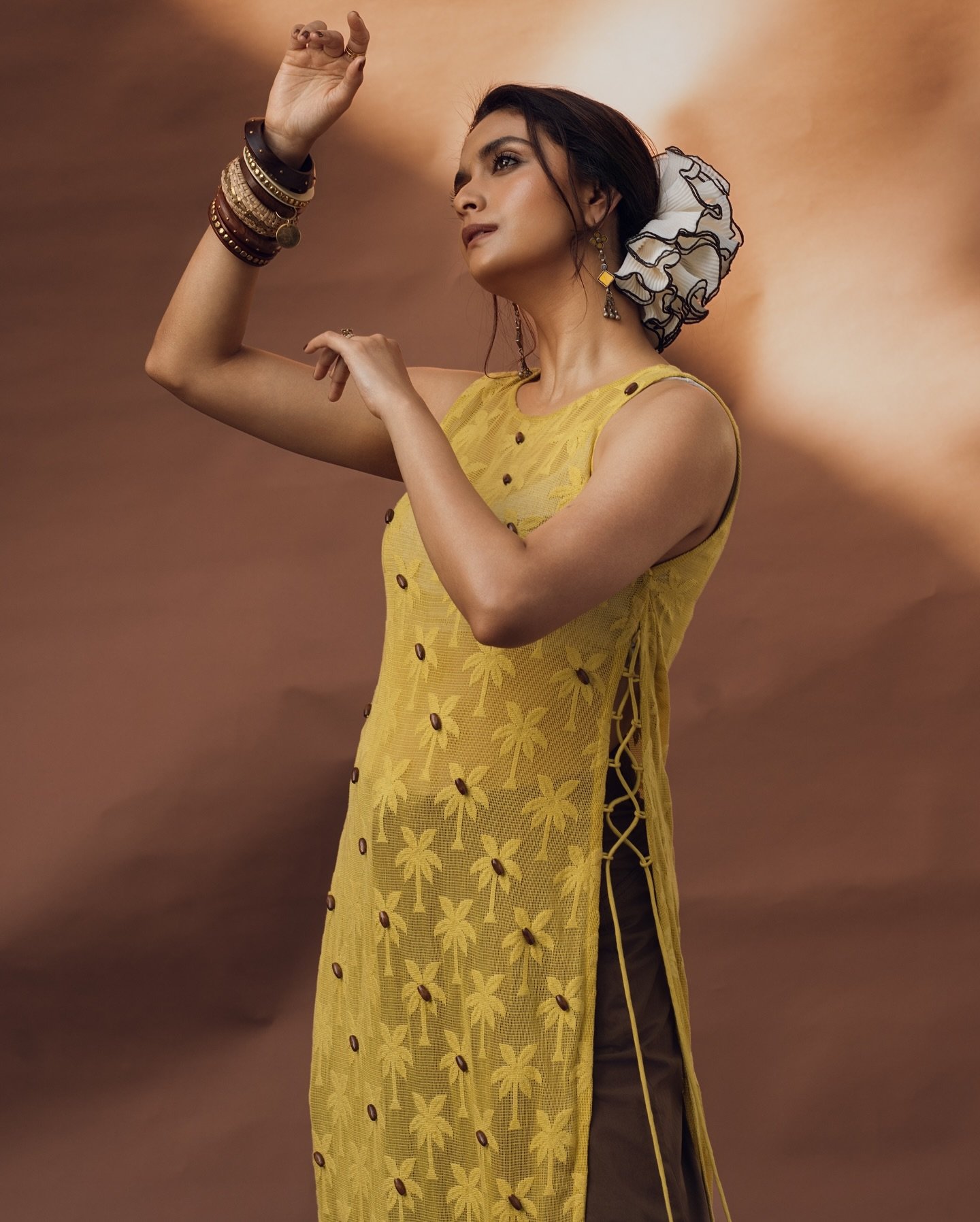 A completely transparent lemon-yellow net kurta? fashion gamble.