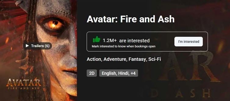 james cameron didn’t just build a franchise — he built a cinematic religion. And india is worshipping again. With less than a month to go, Avatar: fire & Ash has already crossed a jaw-dropping 1.2 million interest marks on BookMyShow, obliterating regular pre-release benchmarks and signalling an explosive december opening.