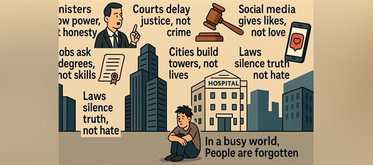 We’re living in a world that looks advanced from the outside but feels hollow on the inside. A world where systems are louder than souls, machines are smarter than people, and every institution built to protect us now quietly betrays us. Behind the skyscrapers, filters, apps, and slogans lies a society bleeding slowly—one compromise at a time. And the harshest part?