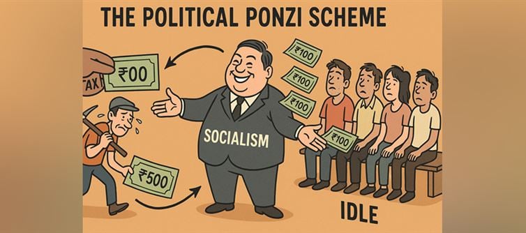 If a normal person took ₹500 from someone who works and handed ₹100 each to five people who don’t, it would be called theft.