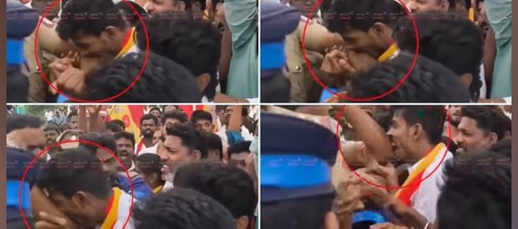 Video evidence doesn't lie: a TVK supporter, clad in party colors, lunges like a wild animal at a cop's hand during the anti-liquor stir in Palacode. This brutal act shames Vijay, whose "zombie fans" have long terrorized social media with verbal abuse against rival actors' supporters and women backing other parties. Now, their online savagery spills into the streets – Vijay, your silence is complicity in this cult of violence.