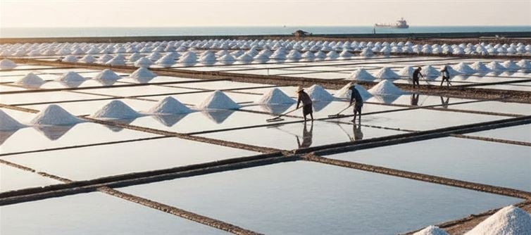 Thousands of workers sweat, shovel, rake, and haul under blistering heat to produce salt that the entire country relies on.