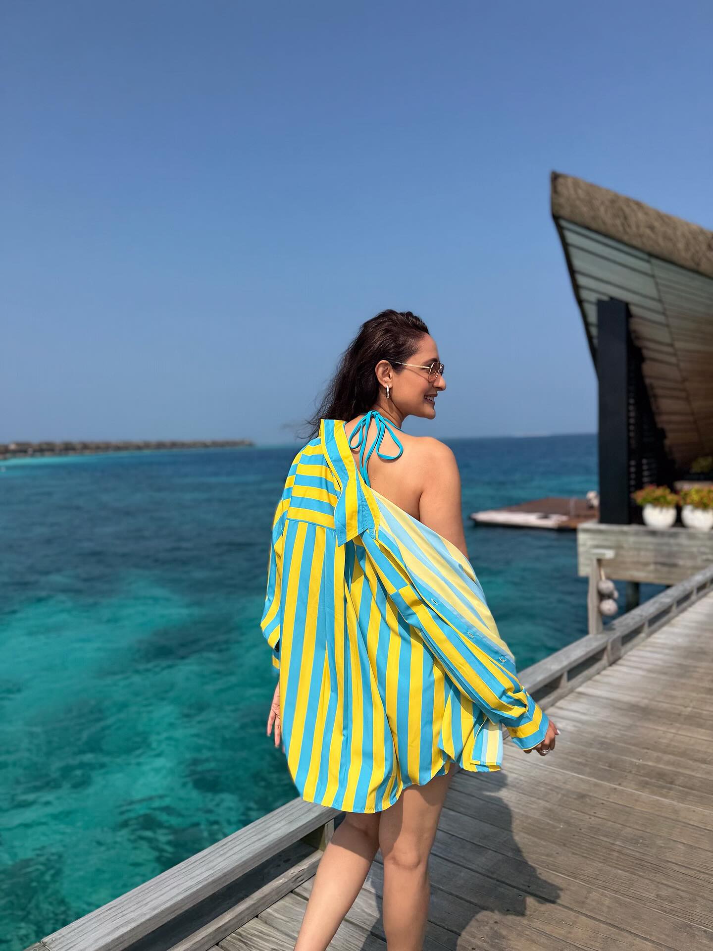 While most celebs lounge with coconuts by the beach, Pragya went full sci-fi goddess inside a neon-blue chamber. Vogue loves a woman who breaks the frame — and Pragya literally broke the temperature scale.