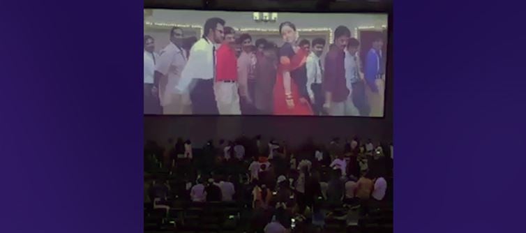 A sunday night. A housefull theatre. Families abandoning seats. Crowds are flooding the front rows. people dancing — not cheering, dancing — at 11 PM like it’s a village festival or temple procession.