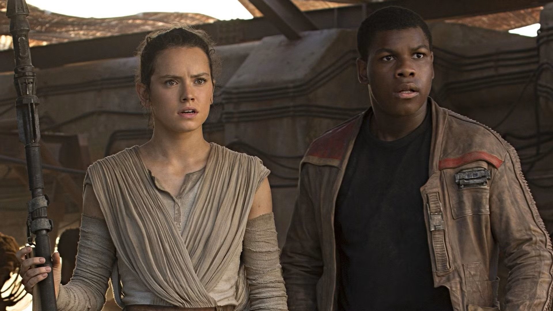Rey is framed as the classic nobody—abandoned, self-reliant, and unknowingly powerful. Crucially, The Force Awakens resists defining her lineage, allowing the possibility that greatness in the Force need not be inherited. Finn’s arc is even bolder: a stormtrooper who defects after witnessing genocide, grappling with trauma and moral awakening.