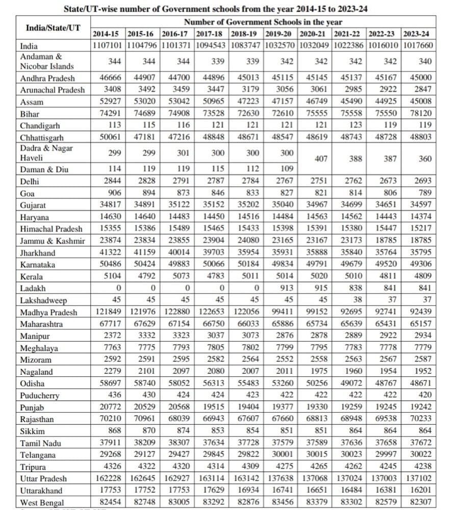 According to UDISE+ (Unified district Information System for education Plus) — the government of India’s own official school database — the number of government schools in tamil Nadu has not decreased, but increased during the DMK tenure. In 2019–20, tamil Nadu had 37,579 government schools. By 2023–24, that number had risen to 37,672. That’s a net increase of 93 schools, not a reduction — let alone a mass shutdown.