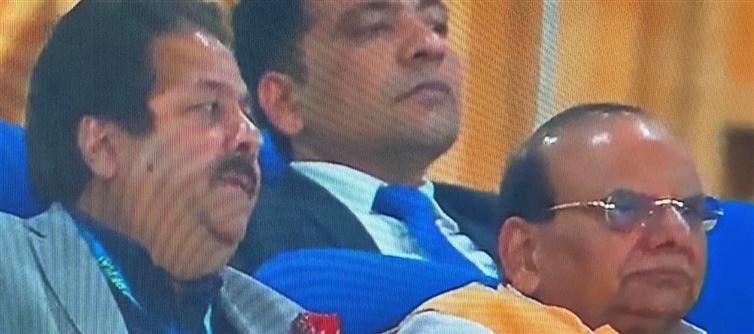 While the capital choked, Vinai Saxena was reportedly in Ahmedabad, enjoying cricket—complete with photo ops and optics.