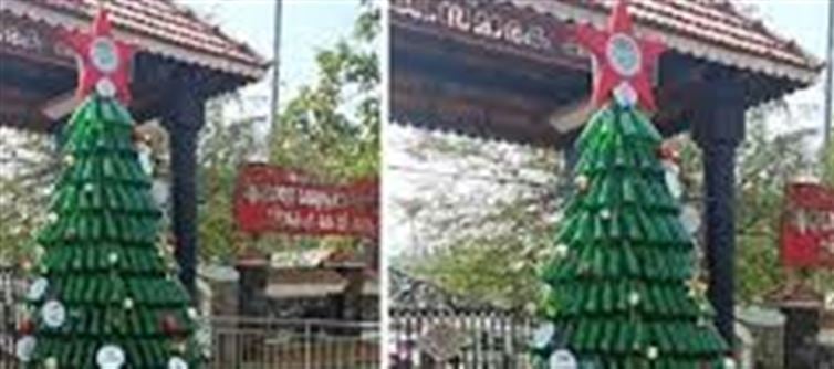 In an unusual festive initiative, a Kerala civic body has created a Christmas tree entirely from beer bottles, aiming to promote recycling and environmental awareness during the holiday season. The tree, adorned with lights and decorations, has become a talking point across the state.
