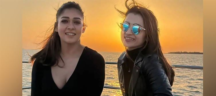No scripts. No sets. No camera-ready poses. Just two stars stepping off the grind. Nayanthara’s clean black V-neck, high ponytail, and white sunglasses signal quiet control. Trisha’s black turtleneck, leather jacket, and blue-tinted shades lean tougher, cooler, and unapologetic. Different energies — same authority.