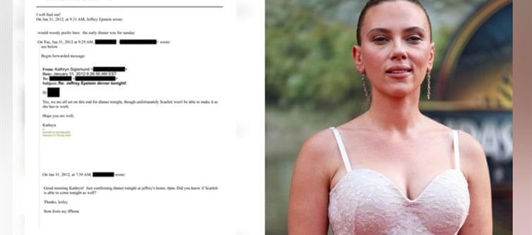 As newly released Epstein files ripple across media and social platforms, one uncomfortable truth keeps surfacing: names alone can change narratives. Among the emails disclosed by the United States Department of Justice is a brief but striking reference to Scarlett Johansson—not as an accusation, not as an allegation, but as a name discussed in the context of a 2012 dinner invitation at “Jeffrey’s home.”