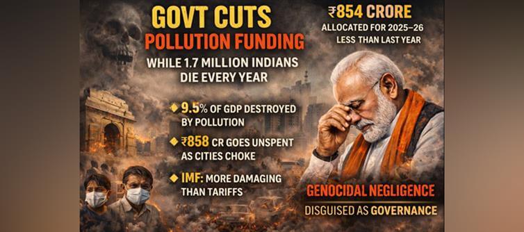 In 2025–26, the Narendra Modi government allocated ₹854 crore for pollution control—LESS than last year’s ₹858 crore. Yes, in a country where 1.7 million people die every year from air pollution, the response was not urgent.
