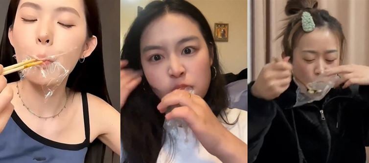 Young people, worried about weight gain and desperate to manage cravings, are reportedly placing plastic wrap or a thin plastic bag over their mouths while eating. They insert food to taste it, chew for flavor, then pull it back out without swallowing.