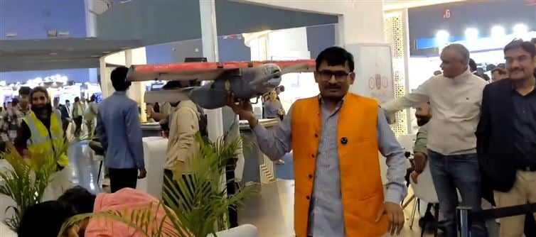 At its pavilion, Galgotias university displayed what was presented as a drone model. But instead of sleek carbon fiber or precision engineering, observers claimed the structure appeared to be made of thermocol, wrapped in plastic film, and secured with rubber bands.