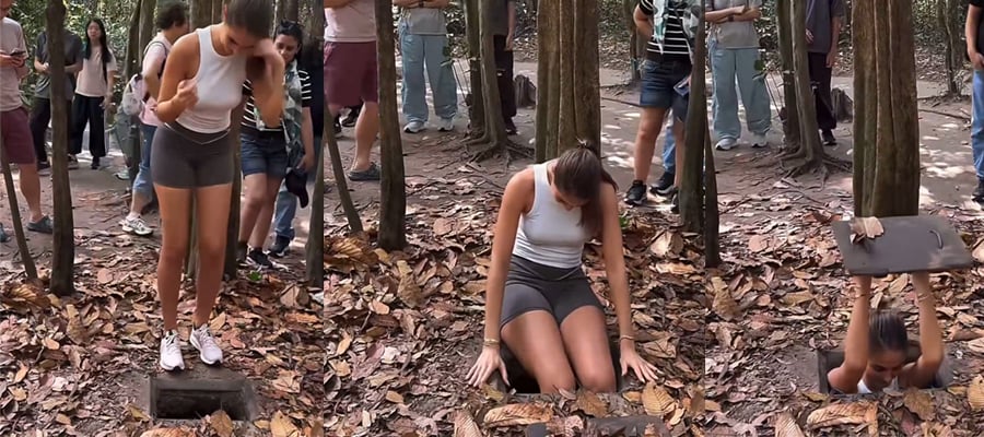 fighter to squat in like a trapped animal. Crafted from bamboo frames topped with dirt, leaves, and grass, these holes blended seamlessly into the jungle floor, turning the ground into a deadly trapdoor. VC fighters crouched inside, clutching a lightweight lid overhead, breathing through bamboo tubes if buried long, invisible until they exploded upward in ambushes, gunning down passing patrols before vanishing.