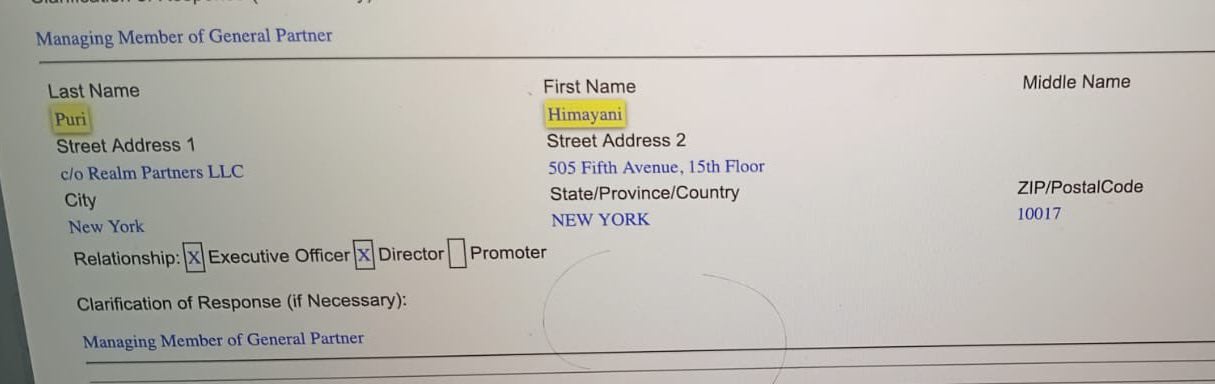 Realm Partners LLC, reportedly New York–based and Cayman Islands–registered