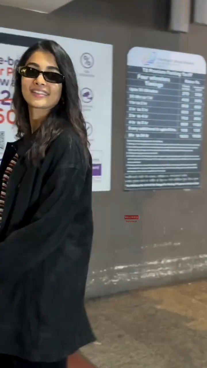 The wide-leg black pants keep the silhouette long, lean, and commanding, while her subtle, knowing smile says she knows exactly the kind of storm she’s brewing among the paps and fans. No loud logos, no forced poses – just pure, unapologetic star power in motion. Pooja isn’t just walking through an airport; she’s owning every inch of it. This is what happens when glamour meets nonchalance and decides to go viral without even posting. Lethal.
