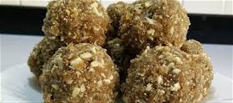 Gond Laddu is prepared using edible gum (gond), which is a natural resin derived from the sap of certain trees, combined with ingredients such as: