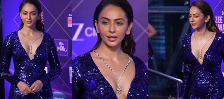 Hold everything – rakul preet singh just stormed the 24th Zee Cine Awards purple carpet in an electric blue sequined masterpiece that's equal parts glamour goddess and total firestarter. This floor-skimming mermaid gown clings like a second skin, exploding with thousands of tiny sequins that catch every light and turn her into a walking constellation.