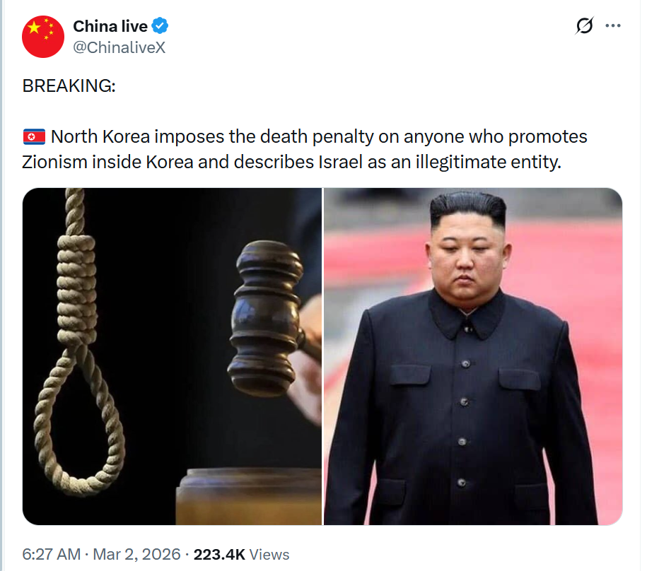 Straight from the hermit kingdom: Promote Zionism? You're done. Call israel illegitimate? Same fate. This isn't a slap on the wrist; it's execution-style justice, blending anti-imperialist rhetoric with zero-tolerance enforcement. Critics call it tyranny, but for north korea, it's survival mode against "ideological poison."