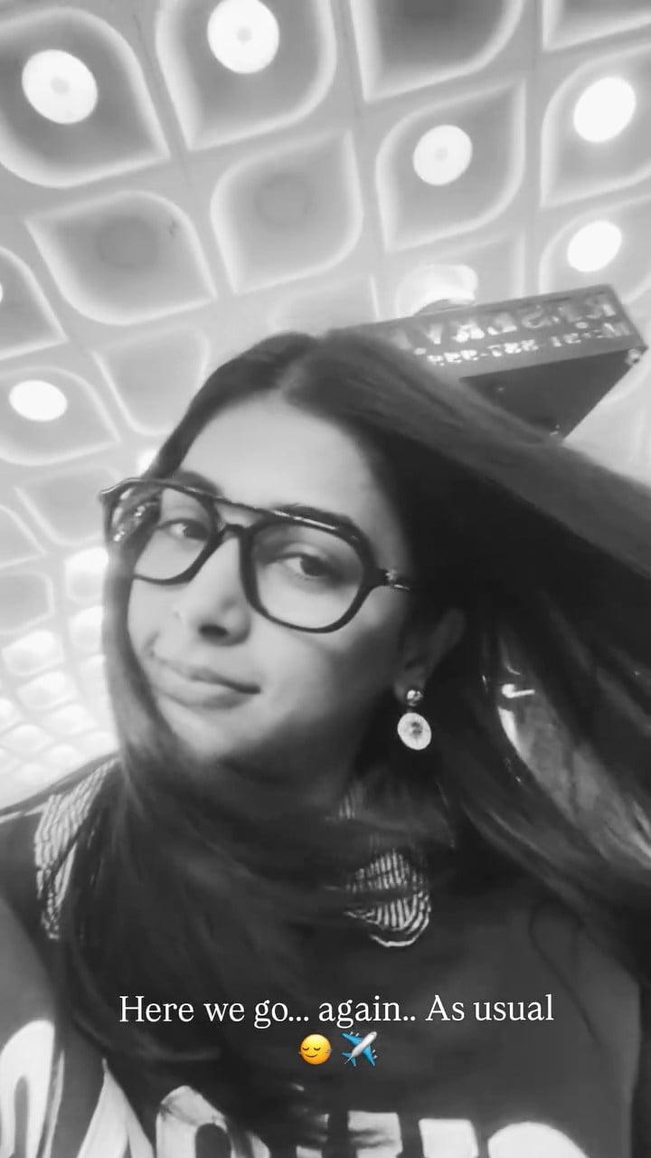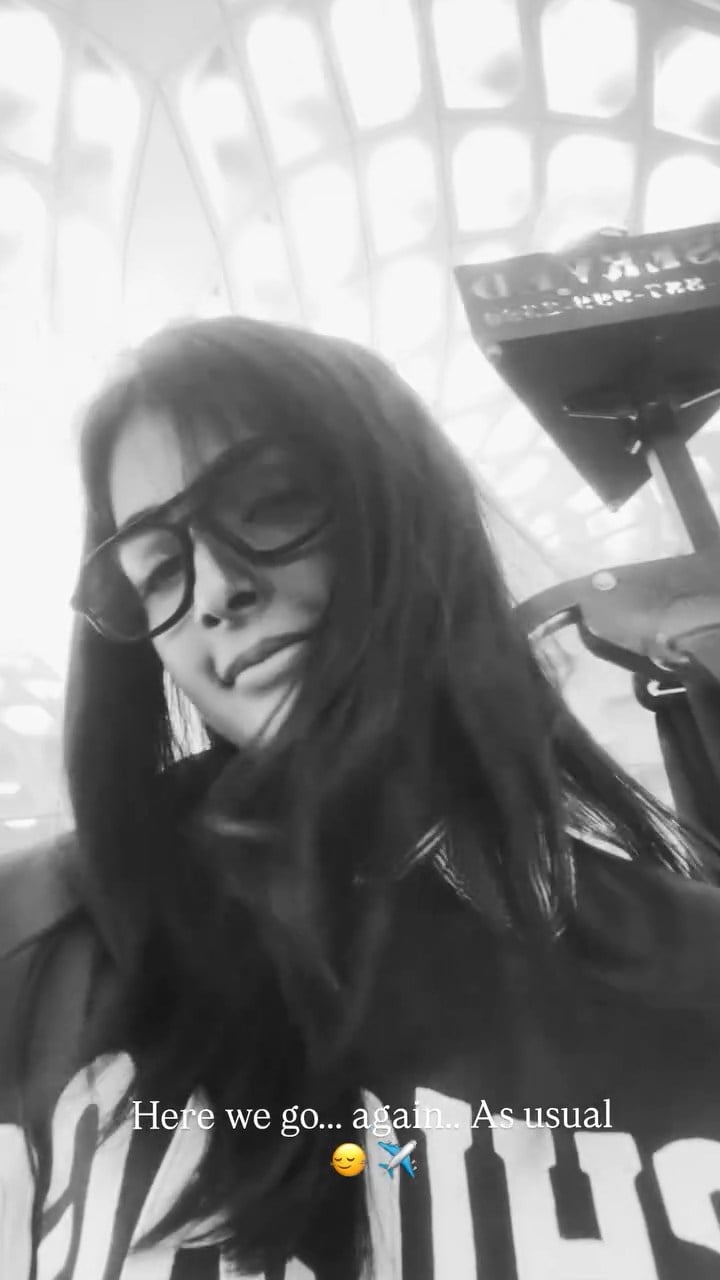 In every frame, she's got that "Here we go... again... as usual" caption vibe – casual, cheeky, almost teasing her fans like this level of stunning is just tuesday for her. The striped shirt peeking out under what looks like a bold graphic tee adds a cool, street-style edge, while those dangling earrings catch the light just right, giving off major "I'm about to jet off and break hearts worldwide" energy. The airplane emoji and sleepy-grin face say she's either exhausted from slaying or playfully exhausted from how effortlessly she slays.