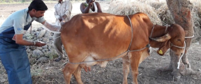 Deepak carefully identifies the precise heat cycle timing before performing insemination.