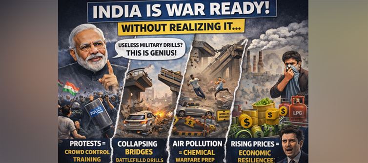 4. The kicker? A faux spokesperson deadpans that even if invaded tomorrow, we won't notice—life's already that bad. Ouch. This "training" isn't empowerment; it's a brutal mirror to neglect. Wake up, powers-that-be: Fix the mess, or admit the joke's on us. Satire stings because it's true—India's "war-ready," alright, but at what cost?