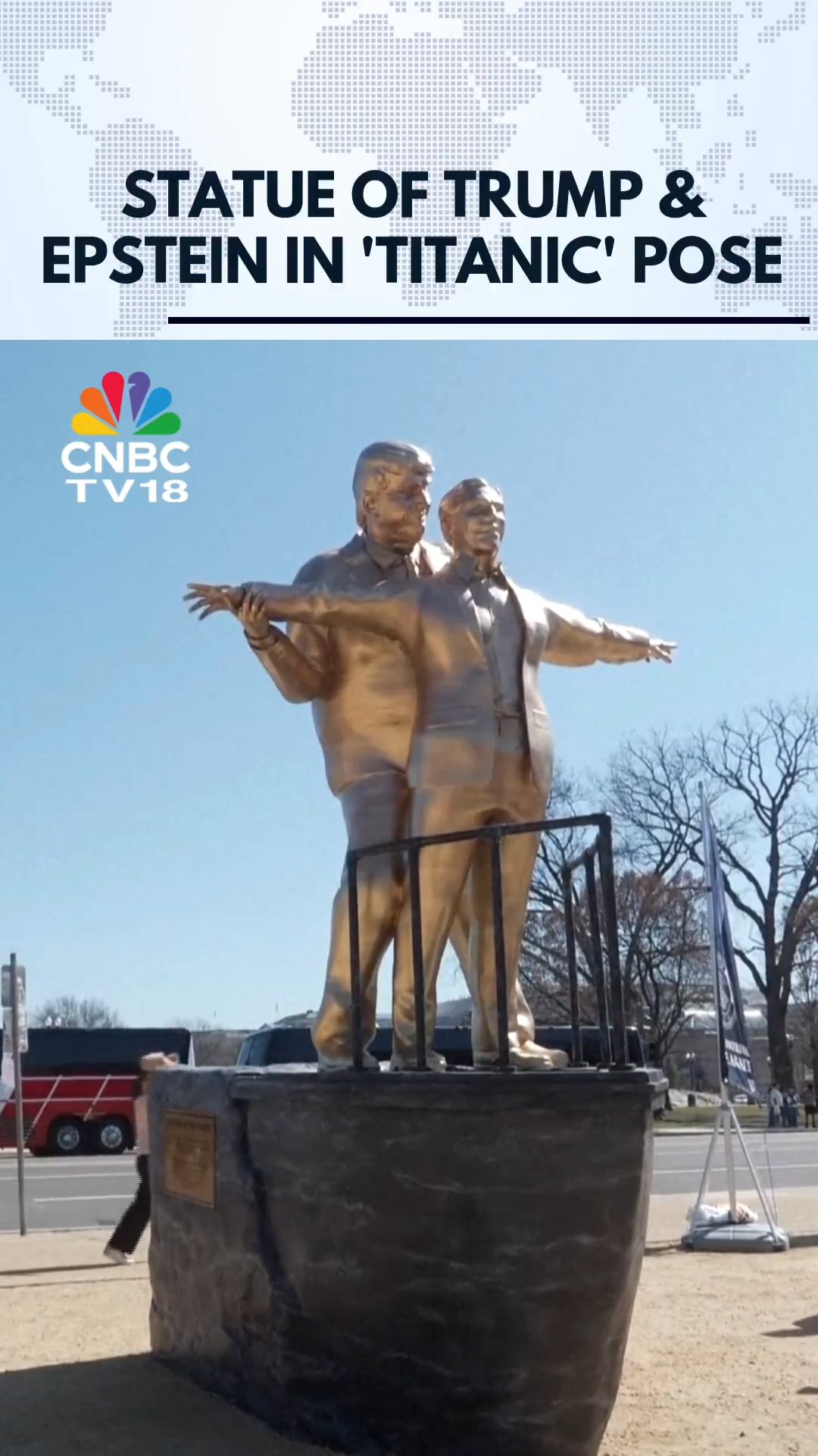 The installation depicts Donald Trump and Jeffrey Epstein standing together in a dramatic, outstretched stance reminiscent of the movie’s iconic “King of the World” moment. The piece quickly began circulating across social media, sparking a wave of reactions ranging from curiosity to outrage.