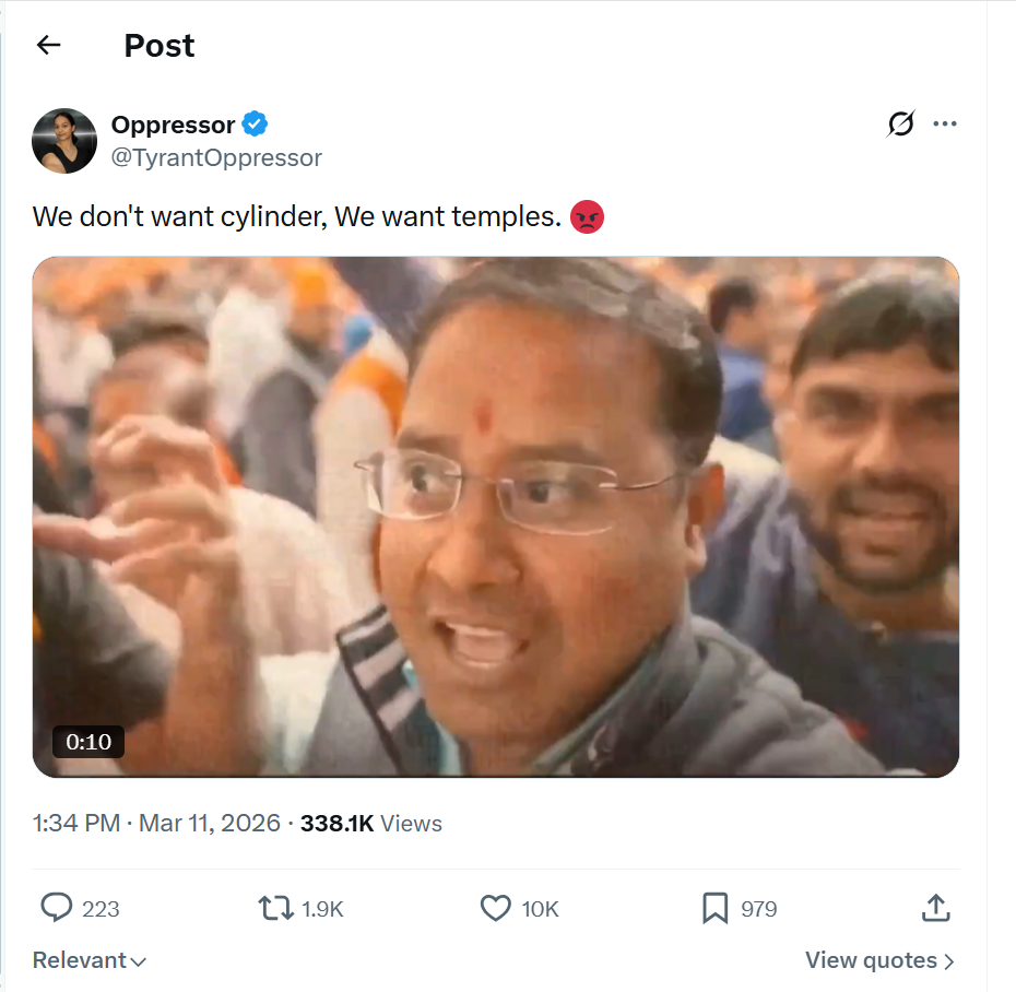 So why the sudden meltdown over LPG cylinder prices burning a hole in your pocket or the UGC mess screwing up exams and futures? You have zero right to outrage now. You didn’t vote for affordable gas or better education – you voted for temple politics and chest-thumping Hindu pride. The bill for that choice just landed, and suddenly you’re shocked? Please.