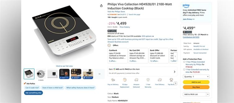 The induction stove was listed at around ₹4,500, which the buyer considers far too high for the product. According to them, it simply doesn’t justify the cost.