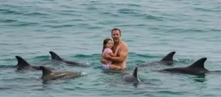 Out of nowhere, a pod of dolphins began circling the group. Not playfully. Not casually. They tightened formation, nudging the swimmers closer together, even blocking attempts to swim away. It felt strange… almost controlling.