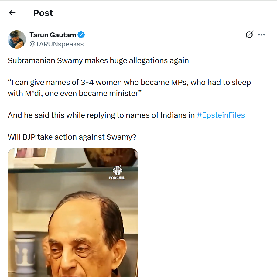 The timing is pure fire. Swamy was reacting to indian names popping up in the Epstein documents – the same files exposing global elite depravity. His response? “I was saddened… but let me tell you about our own backyard.” The hypocrisy stings harder than any Epstein revelation.