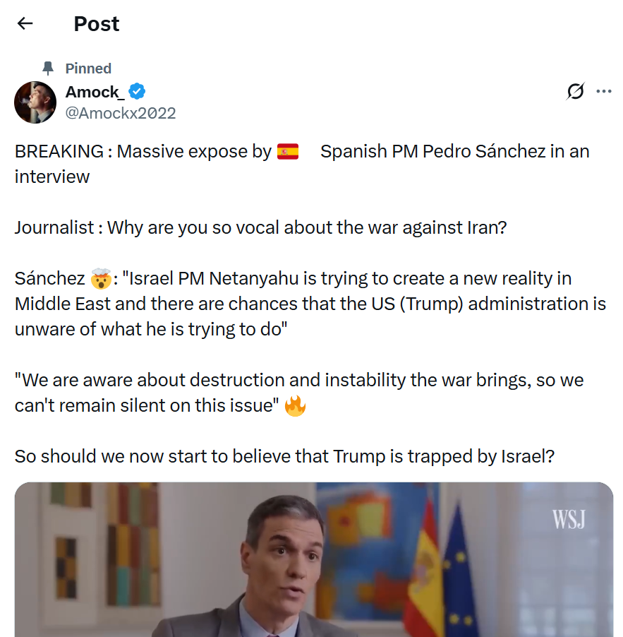 When asked why he has been so vocal about the conflict, Sánchez didn’t default to standard diplomatic language. Instead, he pointed toward concerns about how the situation is evolving — and who might be shaping that trajectory behind the scenes.