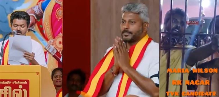 Social media is on fire again, and this time it’s not another Vijay speech clip. It’s a shaky, brutal video of Maria Wilson – TVK’s official candidate for rk Nagar – allegedly losing it on a family. Shouting, threatening, banging on gates, the whole unhinged goon act. The clip has racked up lakhs of views, and the caption says it all: “Chennai rk Nagar TVK candidate’s murderous attack video.” Welcome to Thalapathy’s “new politics.”