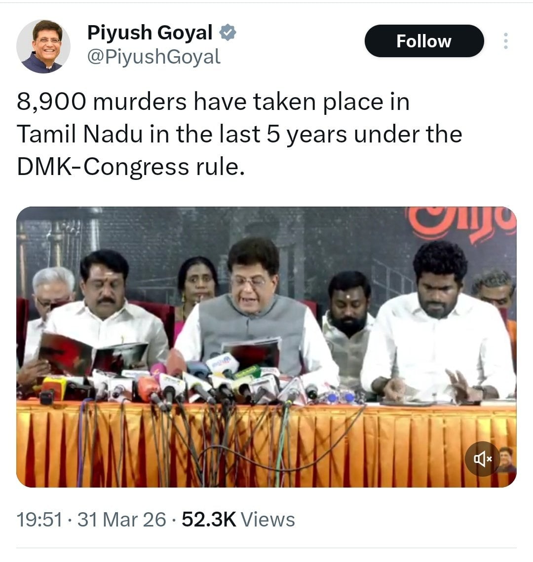 In an age where a single statement can travel faster than the truth, accuracy isn’t optional—it’s a responsibility. So when a Union minister claims that “8900 murders have taken place in tamil Nadu,” it doesn’t just raise eyebrows—it sparks alarm. Because the truth, backed by official data, tells a very different story.