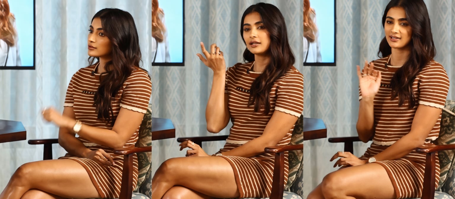 Pooja Hegde is radiating effortless sensuality and sharp sophistication in this striking triptych from what appears to be a stylish