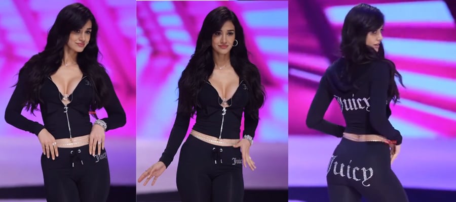 pink and purple lights, Disha didn’t just walk the ramp — she dominated it. Flawless skin, sultry eyes, and killer confidence turned this Juicy Couture moment into one of the hottest highlights of