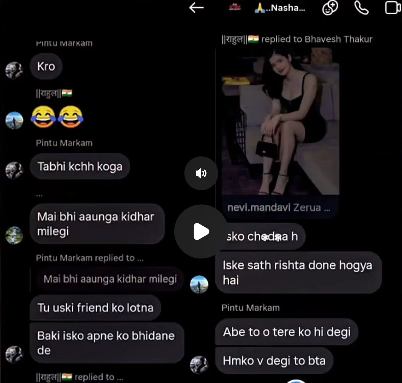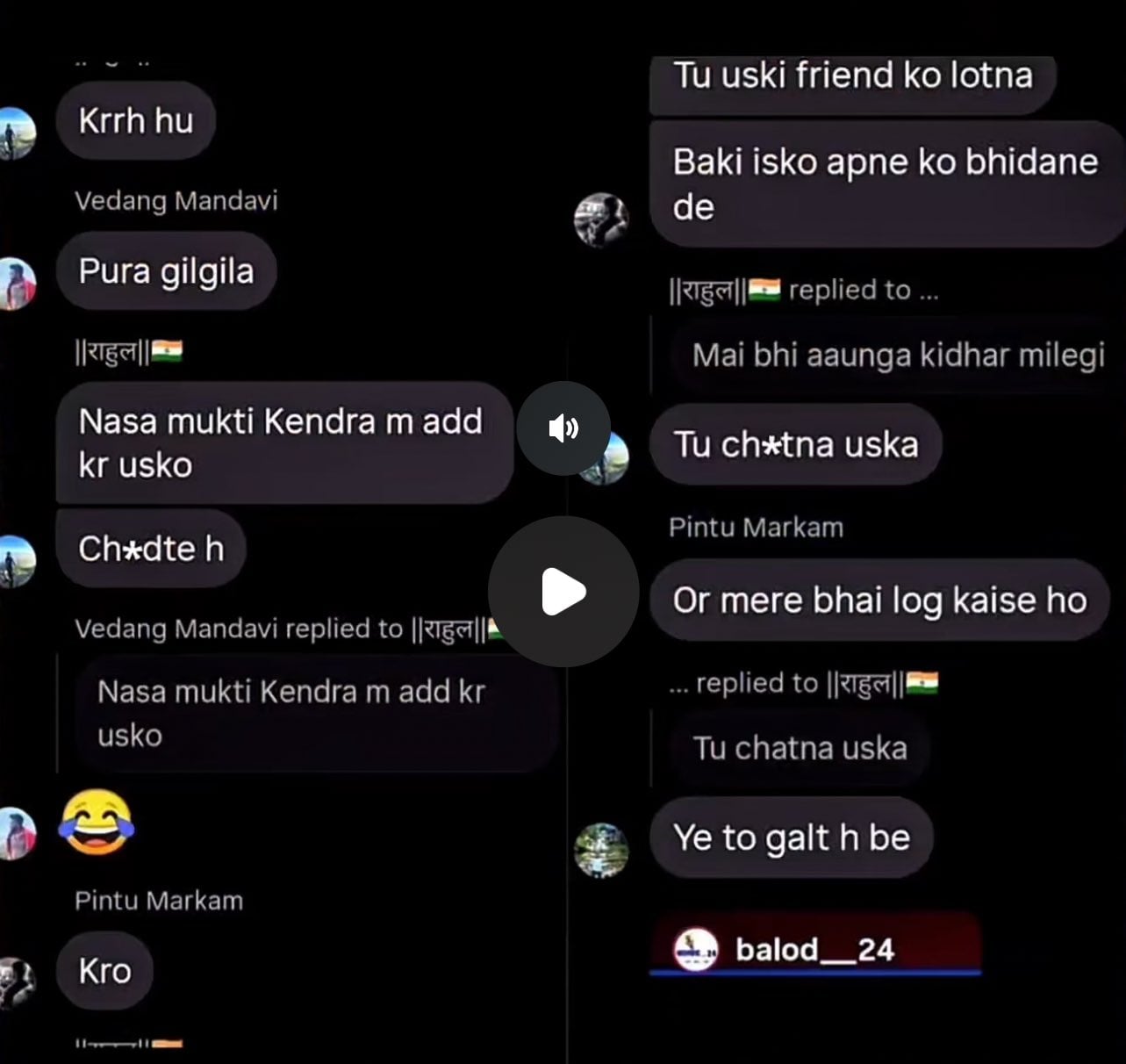 She was reportedly added to an instagram group under the banner of “Nasha Mukti.” What she found inside wasn’t awareness or discussion. It was a space where minors were openly sharing crude, explicit language and discussing violent intentions toward her. This wasn’t random trolling. It had the structure of coordination, conversations that suggested planning, not just venting.