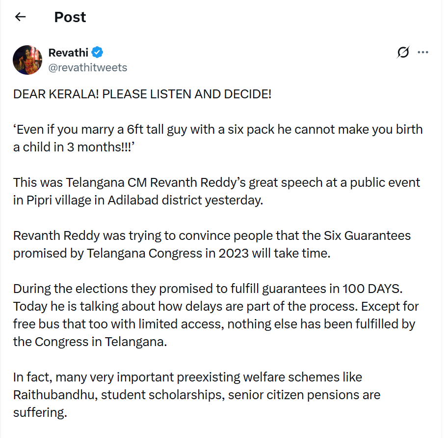 At a recent public event in adilabad district, chief minister Revanth reddy used a striking analogy to explain delays in implementing the congress party’s much-publicized “Six Guarantees.” His point was simple: some things take time, and expectations need to be realistic.