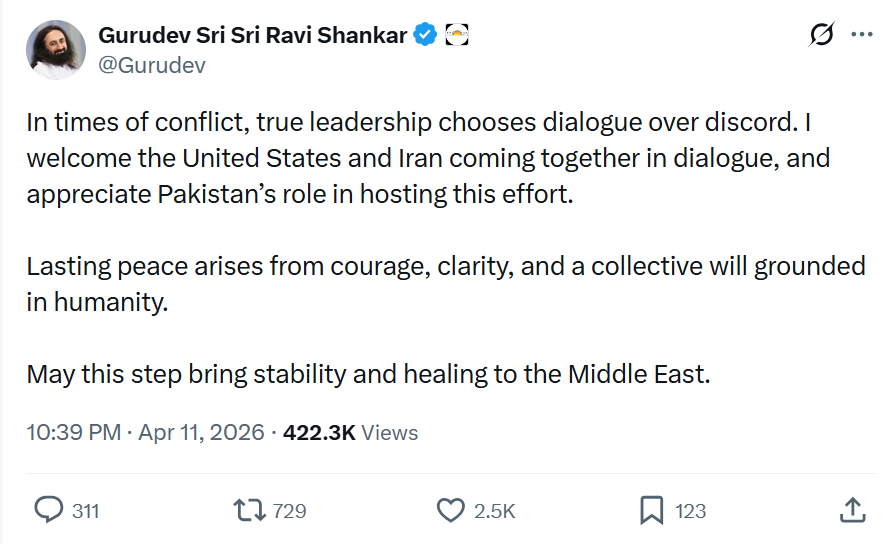 Gurudev’s message was straightforward: dialogue over conflict, peace over escalation. He acknowledged Pakistan’s role in facilitating talks and framed it as a step toward stability in the Middle East. Measured, diplomatic—and unexpectedly controversial in a different way.