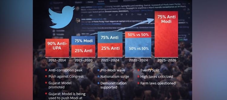 Support consolidated quickly. A large majority of online voices rallied behind Modi, while a smaller but vocal segment raised concerns about intolerance and policy impact. Criticism often triggered sharp pushback, and major events—from demonetization to surgical strikes—were framed through a strongly nationalistic lens.