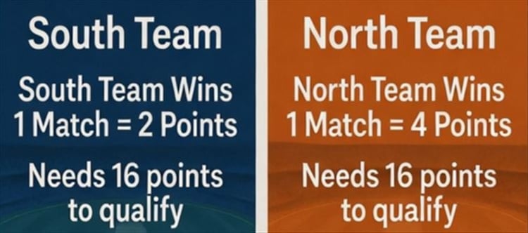 Both teams still need 16 points to qualify. Sounds fair on paper. But look closer — one team has to fight twice as hard to get there. This is how delimitation feels to southern states: the finish line is the same, but the path is steeper, longer, and far more punishing.