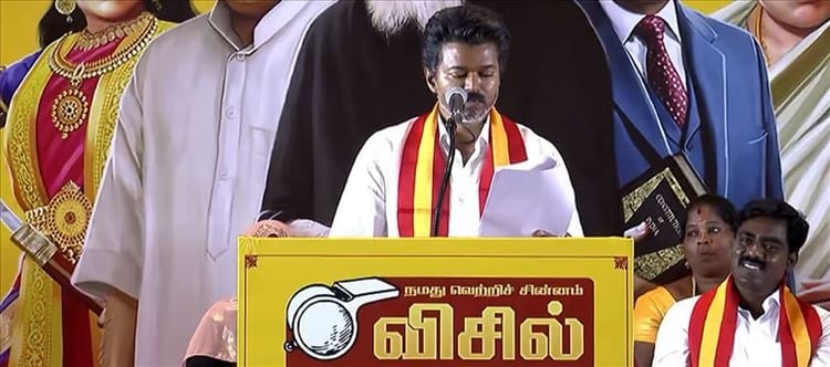 What was meant to be a defining political moment ended up feeling like a perfectly staged film scene—high on drama, low on detail. Vijay’s manifesto launch had everything: a controlled crowd, roaring applause, and punchy declarations. But once the noise settles, one uncomfortable question lingers—what exactly was he trying to say? Strip away the theatrics, and what remains is a document riddled with ambiguity, half-answers, and glaring gaps.