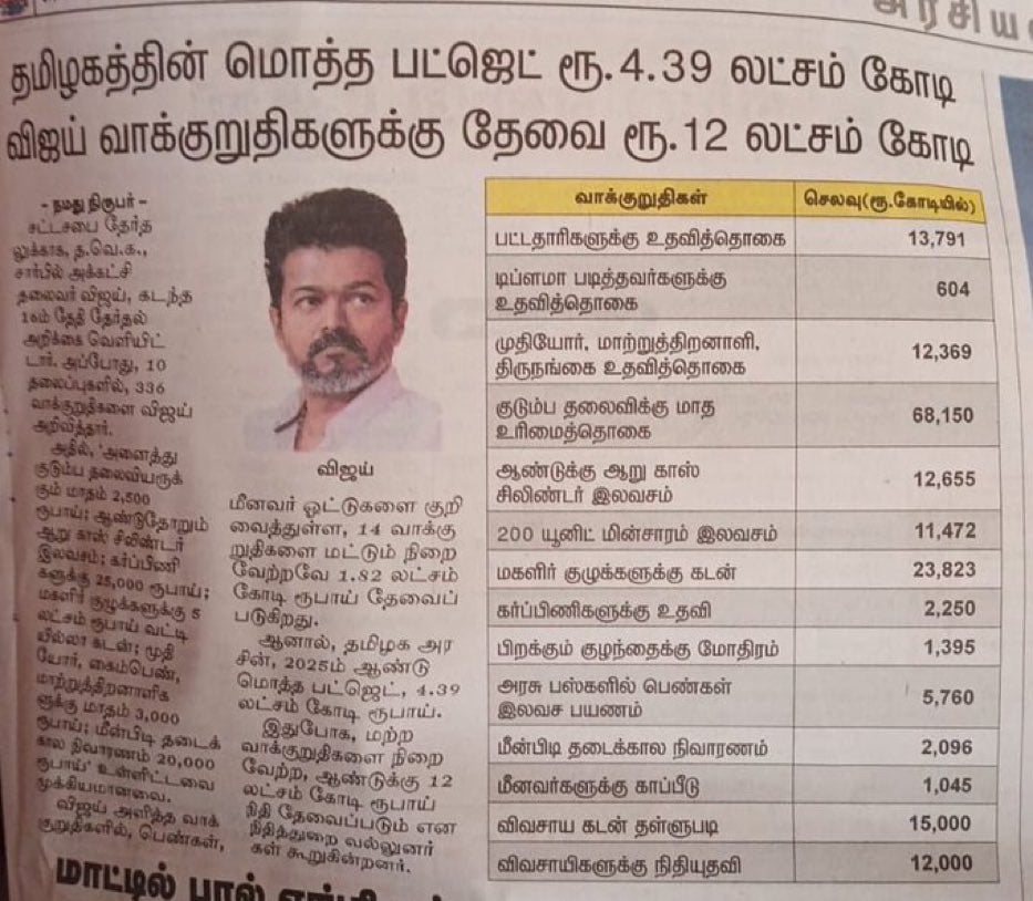Tamil Nadu voters aren’t fools. Before getting swept up in the star power and emotional appeals, ask the only question that matters: where exactly is this ₹4.39 lakh crore – and potentially ₹12 lakh crore – coming from? Without a credible answer, this isn’t a manifesto. It’s a very expensive daydream that the